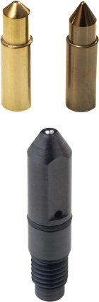 With Tapmatics ScribeWriter you can mark different types of materials from softer metals like aluminum to hardened steel up to 62 HRC. The marking force is completely adjustable by turning the knurled sleeve. There is no need to disassemble to change springs thanks to our unique adjustment feature that employs two types of springs. A heavy square wire spring is in effect for all force settings and an additional machined flexure spring comes into effect at the highest settings. The setting reference number can be easily read through a magnification lens. The long life carbide stylus is simple to change and we offer three standard options, 90 or 60 degree scribing points or 2mm diameter rolling ball point.